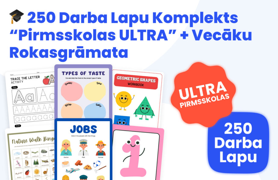 Sadarbībā ar Latvijas labākajiem pedagogiem esam radījuši ULTRA komplektu, kas satur vairāk nekā 250 darba lapu tieši tām prasmēm, kas nepieciešamas, lai bērns veiksmīgi uzsāktu skolas gaitas.